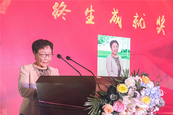 會(huì)上給任桂芳董事長頒發(fā)了“終生成就獎(jiǎng)”,任桂芳董事長在大會(huì)上致辭。