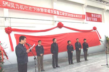 2007年12月30日上午,中復(fù)連眾風力機葉片基地二分廠八號車間熱鬧非凡,中復(fù)連眾數(shù)百名員工隆重集會,慶祝2007年第1000片1.5兆瓦風力發(fā)電機葉片下線暨完成華銳風電300套的供貨任務(wù)。中復(fù)連眾集團總經(jīng)理喬光輝主持了慶典儀式。