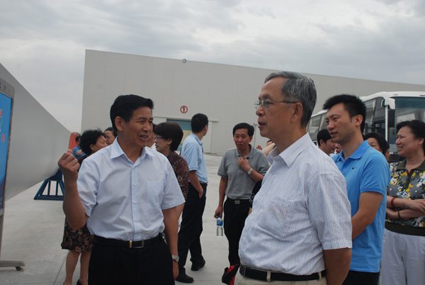 7月15-16日,中國(guó)建材聯(lián)合會(huì)四屆七次會(huì)長(zhǎng)全體會(huì)議在甘肅酒泉召開。會(huì)議期間,中國(guó)建筑材料聯(lián)合會(huì)會(huì)長(zhǎng)張人為、國(guó)務(wù)院國(guó)有資產(chǎn)監(jiān)督管理委員會(huì)國(guó)有大型企業(yè)監(jiān)事會(huì)原主席喬龍德、中國(guó)建材集團(tuán)董事長(zhǎng)宋志平及其他與會(huì)代表視察了中復(fù)連眾風(fēng)機(jī)葉片外埠生產(chǎn)基地之一—中復(fù)連眾(酒泉)公司。中國(guó)復(fù)材集團(tuán)董事長(zhǎng)、總經(jīng)理張定金陪同考察。