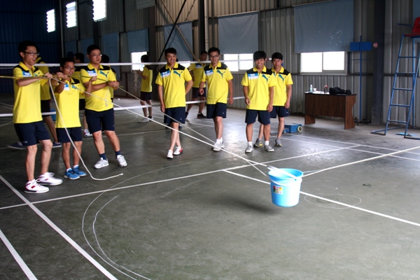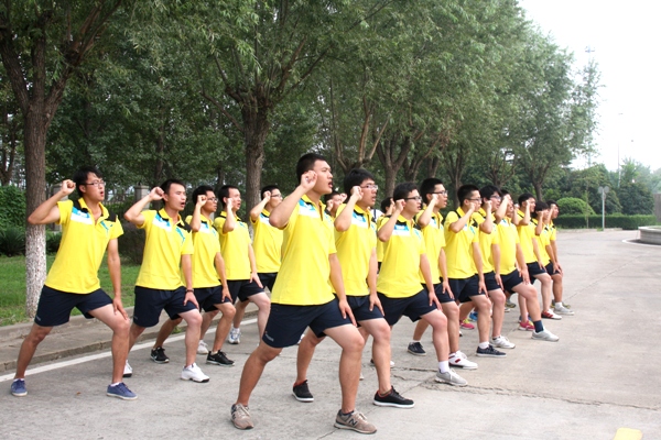 全體人員被隨機(jī)分為夢十二隊(duì)和雄鷹隊(duì)兩隊(duì),設(shè)計(jì)各隊(duì)的口號和隊(duì)歌。活動正式開始前,教練帶領(lǐng)全體學(xué)員進(jìn)行簡單的立正、稍息訓(xùn)練,之后開始了絕地救援、信任背摔、時(shí)間管理、穿越電網(wǎng)等一系列拓展訓(xùn)練活動。