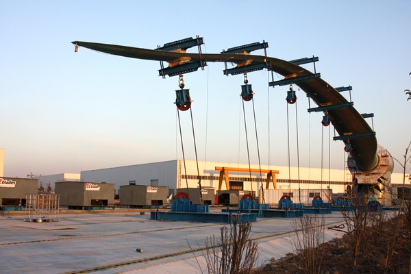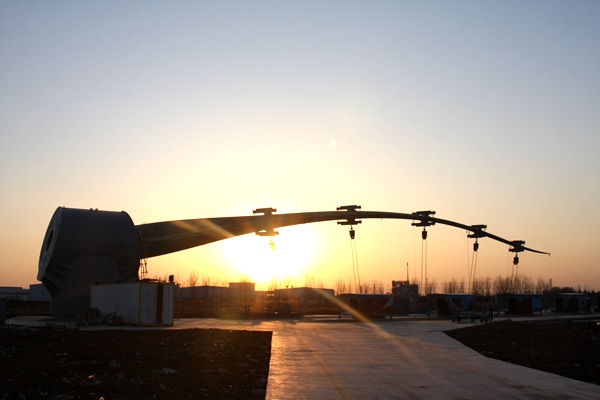 11月30日,中復(fù)連眾10兆瓦試驗(yàn)臺(tái)正式啟用,順利完成首只62米、5兆瓦風(fēng)機(jī)葉片靜力試驗(yàn)。