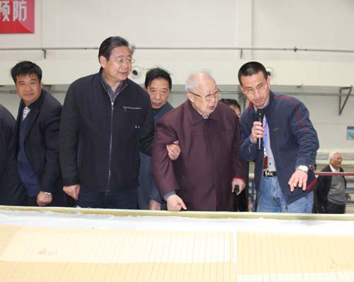 中復(fù)連眾副總經(jīng)理王彤兵首先對省級老干部考察團的到來表示歡迎,并向考察團介紹了中復(fù)連眾風(fēng)力發(fā)電機葉片的生產(chǎn)工藝。目前中復(fù)連眾生產(chǎn)的風(fēng)力發(fā)電機葉片主要基材為環(huán)氧樹脂,產(chǎn)品設(shè)計使用壽命為20年。去年年底中復(fù)連眾已成功躍居國內(nèi)最大的兆瓦級風(fēng)力發(fā)電機葉片生產(chǎn)企業(yè),2008年計劃生產(chǎn)750套風(fēng)力發(fā)電機葉片。
