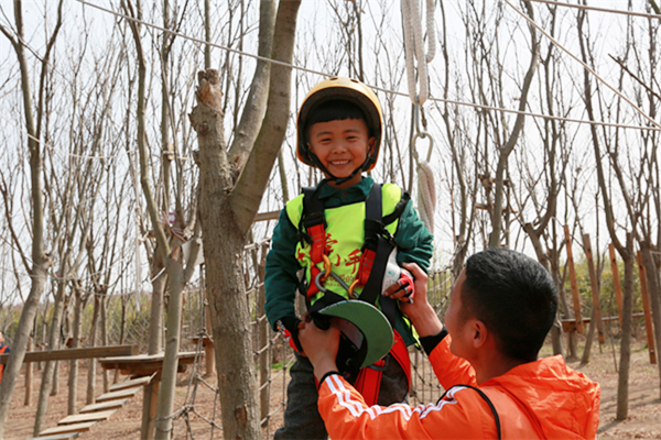 活動當天,所有參加人員身穿統(tǒng)一服裝來到葉片事業(yè)部連云港工廠,葉片事業(yè)部的領導們?yōu)樾∨笥杨C發(fā)了紀念品以示歡迎。他們先后參觀了公司的葉片實驗臺、16#生產(chǎn)車間及多功能展廳。孩子們看到展廳里隨著音視頻轉(zhuǎn)動的葉片,一個個興奮地爭先合影。一個小朋友看到多維葉片模型直呼是爸爸做的,逗得旁人一陣笑。隨后,所有人員乘車來到拓展基地開展戶外親子活動,活動共準備了3個節(jié)目:叢林探險、互動小游戲、動物表演秀。叢林探險的每個環(huán)節(jié)都充滿挑戰(zhàn),小朋友們需要在父母的支持與鼓勵下逐級過關,小游戲環(huán)節(jié)則需要孩子們獨立完成,汗水與歡笑在孩子們紅撲撲地小臉上洋溢著,最終每個孩子都獲得了工作人員精心準備的獎品,個個滿載而歸。一位來自一線的員工說道,自己平時工作忙,很少有機會陪孩子玩,在這次親子活動中,可以和孩子一起互動玩游戲、看表演,感覺特別幸福。