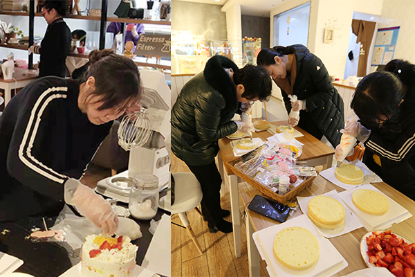 蛋糕烘焙對(duì)于公司女員工來(lái)說(shuō)是一項(xiàng)全新的體驗(yàn),大家興致勃勃,在專(zhuān)業(yè)烘焙師傅的指導(dǎo)下,按照腦中構(gòu)思已久的造型進(jìn)行制作。大家相互幫助、相互贊美,打奶油、裱花、裝飾……每個(gè)人忙得不亦樂(lè)乎,經(jīng)過(guò)近兩個(gè)小時(shí)的時(shí)間,一個(gè)個(gè)創(chuàng)意十足的作品展現(xiàn)在大家的眼前。