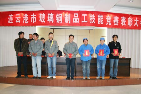 10月31日下午,歷時(shí)五個(gè)多月的連云港市玻璃鋼制品工技能競(jìng)賽圓滿(mǎn)地落下了帷幕,表彰大會(huì)在中復(fù)連眾復(fù)合材料集團(tuán)有限公司勝利召開(kāi),市總工會(huì)劉建國(guó)副主席、經(jīng)濟(jì)技術(shù)部甄翔部長(zhǎng)、市勞動(dòng)和社會(huì)保障局培訓(xùn)處王能倜處長(zhǎng)、中復(fù)連眾董事長(zhǎng)任桂芳、副總經(jīng)理南洋、總經(jīng)理助理伏廣才在主席臺(tái)就坐,副總經(jīng)理耿婷芳主持會(huì)議,全體行管成員、參賽選手和班組長(zhǎng)代表參加了會(huì)議。