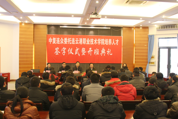 2月25日,中復(fù)連眾委托連云港職業(yè)技術(shù)學(xué)院培養(yǎng)人才簽字儀式暨開班典禮隆重舉行。中復(fù)連眾總經(jīng)理喬光輝、連云港職業(yè)技術(shù)學(xué)院副院長(zhǎng)駱汝九、學(xué)院教師代表和全體學(xué)員出席儀式。