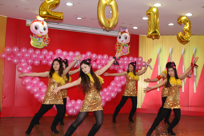 聯(lián)歡會(huì)在管罐營(yíng)銷部范賢浩MJ獨(dú)舞《DANGEROUS》中精彩開(kāi)幕,掀起一個(gè)小高潮;信息管理部周福超一曲《青花瓷》委婉動(dòng)聽(tīng),帶我們感受中國(guó)風(fēng)的魅力;范賢浩和信息部張哲寧踏著《Dreams come true》的節(jié)奏,給觀眾不一樣的精彩;管罐營(yíng)銷部陳冠升傾情演繹了劉歡《我和你》、楊坤《無(wú)所謂》和汪峰《我愛(ài)你中國(guó)》經(jīng)典歌曲,模仿精彩到位、惟妙惟肖。贏得全場(chǎng)最高分貝尖叫的當(dāng)屬財(cái)務(wù)部蘇茗茗,她的獨(dú)舞《十分鐘》,揮灑自如,酷勁十足,新一代 “舞后”應(yīng)運(yùn)而生;葉片營(yíng)銷部王睿妍、管罐國(guó)際部吳瑜和范賢浩分別帶來(lái)了德文歌曲《即使在雨中》、俄文歌曲《喀秋莎》和韓文歌曲《大長(zhǎng)今主題曲》,讓我們感嘆中復(fù)連眾真是藏龍臥虎地;功夫不負(fù)有心人,經(jīng)過(guò)一個(gè)多月的辛苦排練,黃偉、潘慧等六位美女的舞蹈《SMILE》,終于贏得了陣陣喝彩;郭偉、孫誠(chéng)的歌曲《溫柔》,配合默契,唱功一流;由李成威、劉世民、譚倩倩、張丹表演的《拜年》講述了一對(duì)小夫妻回家拜年的爆笑經(jīng)歷,笑料十足;聯(lián)歡會(huì)在《恭喜發(fā)財(cái)》中落下帷幕。